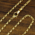 アズキチェーンとロールチェーンの中間のような滑らかな曲線が持ち味の、ゴールドの重みを感じるチェーンです。適度なふくらみで肌あたりもよく、どんなスタイルにも相性の良いデザイン。スタイリッシュな六角形の留め具がポイントになっています。