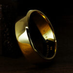 正面(半周)は艶消し加工を施し、もう半周とリング 指輪 の縁は鏡面仕上げにすることでコントラストを際立たせ、ゴールドの魅力を引き出しました。地金だけのシンプルで艶やかな輝きをお楽しみください。
