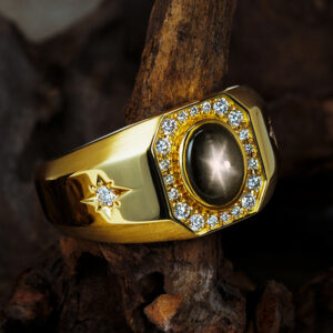 K18YG ブラックスターサファイア ダイヤリング RY011